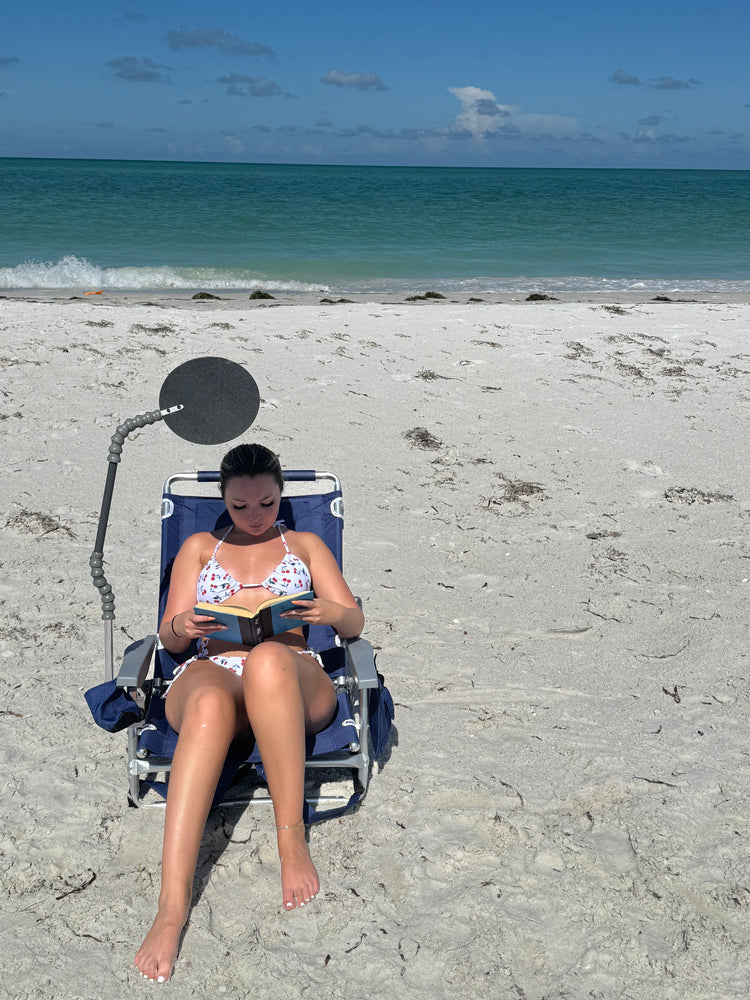 Finally, I can sit by the pool and read without squinting the whole time. The spring clamp attaches to my lounge chair perfectly!